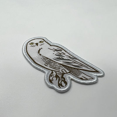 Custom White Owl Iron On Woven Patches Merrowed Border Washable Clothing Patch